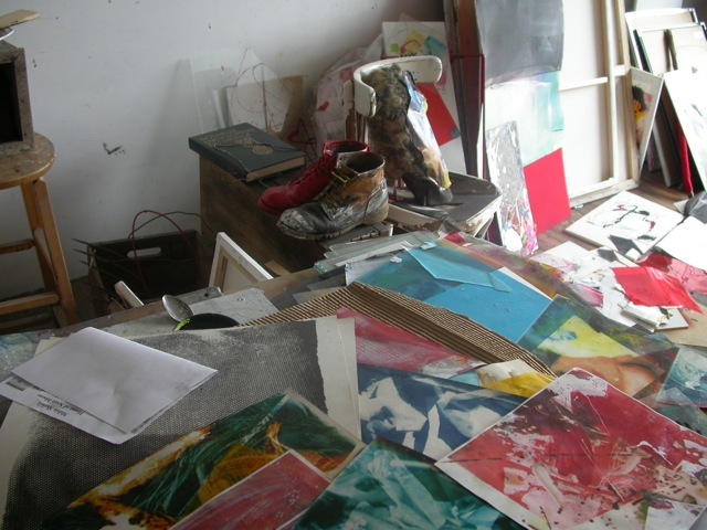 In this series of images taken in 2009 in her studio, I wondered if the viewer might think that the apparent mess comes from her being in the 7th year of her illness (dementia/alzheimer, it was never made clear, as she vividly refused herself to any diagnosis). I shall clarify rapidly. This is not the case. Her studio evolved along this same and very particular wavelength ever since she obtained access to one in 1971.