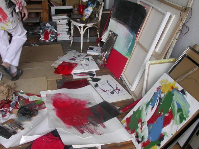 In this series of images taken in 2009 in her studio, I wondered if the viewer might think that the apparent mess comes from her being in the 7th year of her illness (dementia/alzheimer, it was never made clear, as she vividly refused herself to any diagnosis). I shall clarify rapidly. This is not the case. Her studio evolved along this same and very particular wavelength ever since she obtained access to one in 1971.